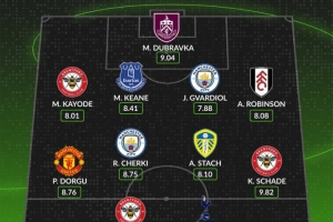 后卫:卡约德(布伦特福德,8.01分)、基恩(埃弗顿,8.41分)、格瓦迪奥尔(曼城,7.88分)、罗宾逊(富勒姆,8.08分)