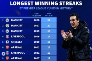 体育资讯12月29日讯 维拉在本轮英超2-1逆转切尔西,打出了一波各项赛事11连胜,数据统计显示这也在英超历史名列前茅。