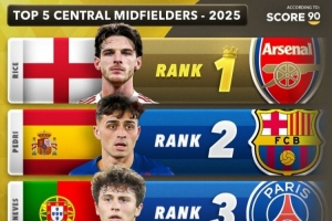 体育资讯12月31日讯 2025年世界足坛精彩纷呈,但也即将拉下帷幕。Score90媒体评选出各个位置的前5最佳球员,其中包括最佳中场、最佳进攻型中场、最佳防守型中场、最佳左边锋、最佳右边锋、最佳前锋、最佳左后卫、最佳右后卫、最佳中后卫、最佳门将。