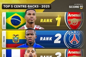 以下是2025年最佳中后卫前五榜单: