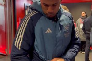 体育资讯12月31日讯 阿森纳4-1大胜维拉,赛后阿森纳官方晒出了枪手众将在球员通道的反应,加布里埃尔做出了维拉中场奥纳纳的庆祝动作。
