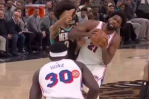 美媒打趣:恩比德一肘一倒,罚球就来了!
