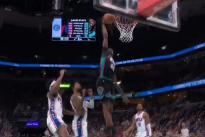石破天惊!布莱克反击独闯龙潭 在4人合围中起飞单臂暴扣