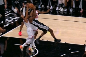 很拼!大瓦格纳下巴被小贾伦肘出血 场边止血后继续杀伤罚球