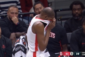大敌当前!火箭球员入场:KD、申京面无表情 仅杰夫·格林露笑意