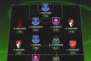 后卫:内科·威廉姆斯(诺丁汉森林,7.96分)、塔科夫斯基(埃弗顿,8.26分)、约什·劳伦特(伯恩利,8.24分)、特吕费尔(伯恩茅斯,7.78分)