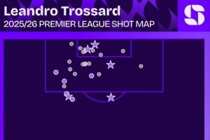 数据统计显示,特罗萨德本赛季在英超共计27次射门、10次射正打进5球,并列同期队内最多。