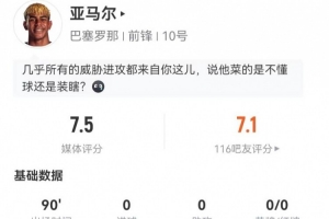 体育资讯1月4日讯 巴萨在本轮西甲对阵西班牙人,亚马尔本场数据如下: