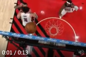 詹姆斯快攻合球撞倒米勒 裁判吹罚防守犯规 黄蜂教练挑战失败