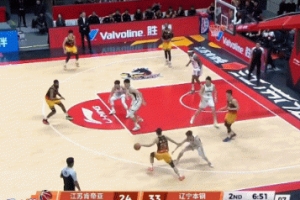 江苏球员庞峥麟第二节一度连得7分帮助球队缩小分差,但他紧接着连续出现失误,然后被换下休息。