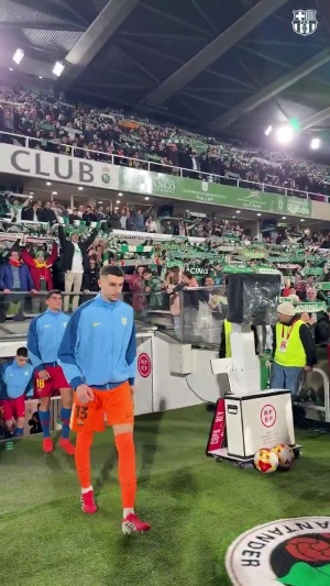 国王杯桑坦德竞技vs巴塞罗那,赛前桑坦德为西超杯冠军巴萨列队