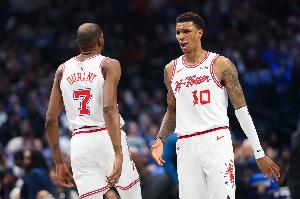 76人VS骑士首发出炉:马克西&乔治&恩比德出战 骑士米切尔领衔