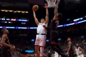 登哥硬!哈登单打斯科蒂·巴恩斯 变向突破撤步关键中投领先3分!