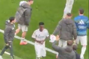 记者Jose Padilla晒出视频,赛后维尼修斯径直返回更衣室,未参与球队的谢场,也没有和莱万特球员致意。