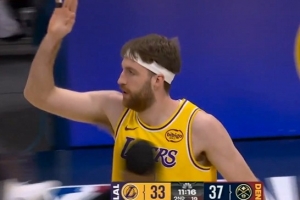 是他自己脱手了!拉拉维亚上篮球出界 掘金挑战成功拿回球权
