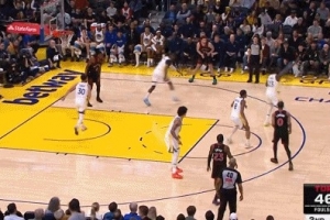 勇士第三节狂轰44分!库明加压哨上篮追至14分 主场球迷起立鼓掌