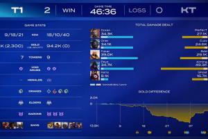 体育资讯01月23日讯 T1 2:0 KT,赛后数据面板显示T1在落后13.9k经济差的情况下最终翻盘比赛。