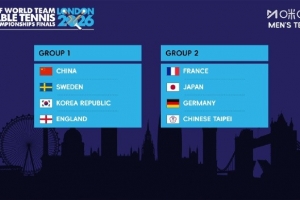 伦敦世乒赛团体赛分组:国乒男团与瑞典、韩国、英格兰同组