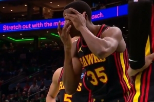 远离伤病啊!贝恩上篮后有些受伤一瘸一拐下场 好在无碍