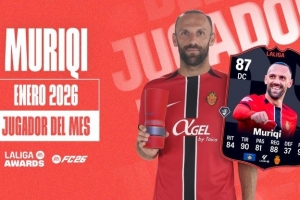 体育资讯1月31日讯 今日,西甲官方宣布,马洛卡前锋穆里奇当选1月西甲最佳球员。