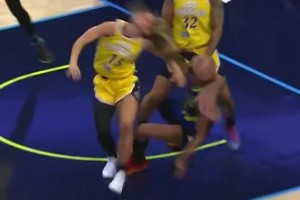 波杰姆抢板空中坐到OG身上 下落踢到后者鼻子 回看后未升级