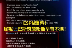 对詹姆斯不满?珍妮回应:詹姆斯对湖人有卓越贡献 ESPN报道不实