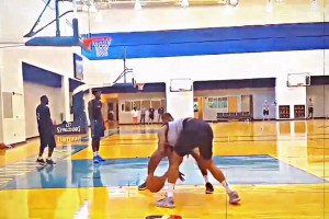 杨瀚森热身时尝试大风车灌篮 不小心磕到手指 不停吮吸