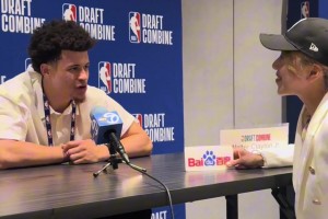 波杰姆抢板空中坐到OG身上 下落踢到后者鼻子 回看后未升级